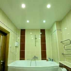 Натяжные потолки из ПВХ подходят для установки в любом помещении - как жилом, так и общественном. Они не боятся влажности, поэтому подходят даже для установки в ванной комнате. Единственное ограничение для таких потолков - температурное. Полотна не рекомендуется монтировать в помещениях с Пин Ап или пониженной температурой - в банях и саунах, на незастекленных балконах и лоджиях.